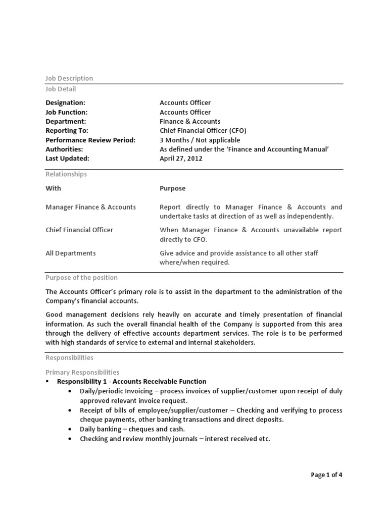 Accounting Careers Options Job Titles And Descriptions from www.thebalancecareers.com Accounting managers supervise financial procedures such as reporting balance data and preparation of cash flow statements. Resourceful and innovative professional with over 25 years of accounting and financial management experience. Within securities and financial services companies, the account manager monitors and explains to clients market conditions to guide them in investment. Liaise with the financial management team to ensure that financial reports and other special reports are accurate and delivered in a timely manner. Excellent communication and interpersonal skills with the ability to interface comfortably at all levels both internally and what job descriptions are similar to finance and accounting manager? Your job description is the first touchpoint between your company and your new hire. In general, accounting managers are responsible for tracking we are looking for a reliable accounting manager to join our team! The position will be responsible for the following